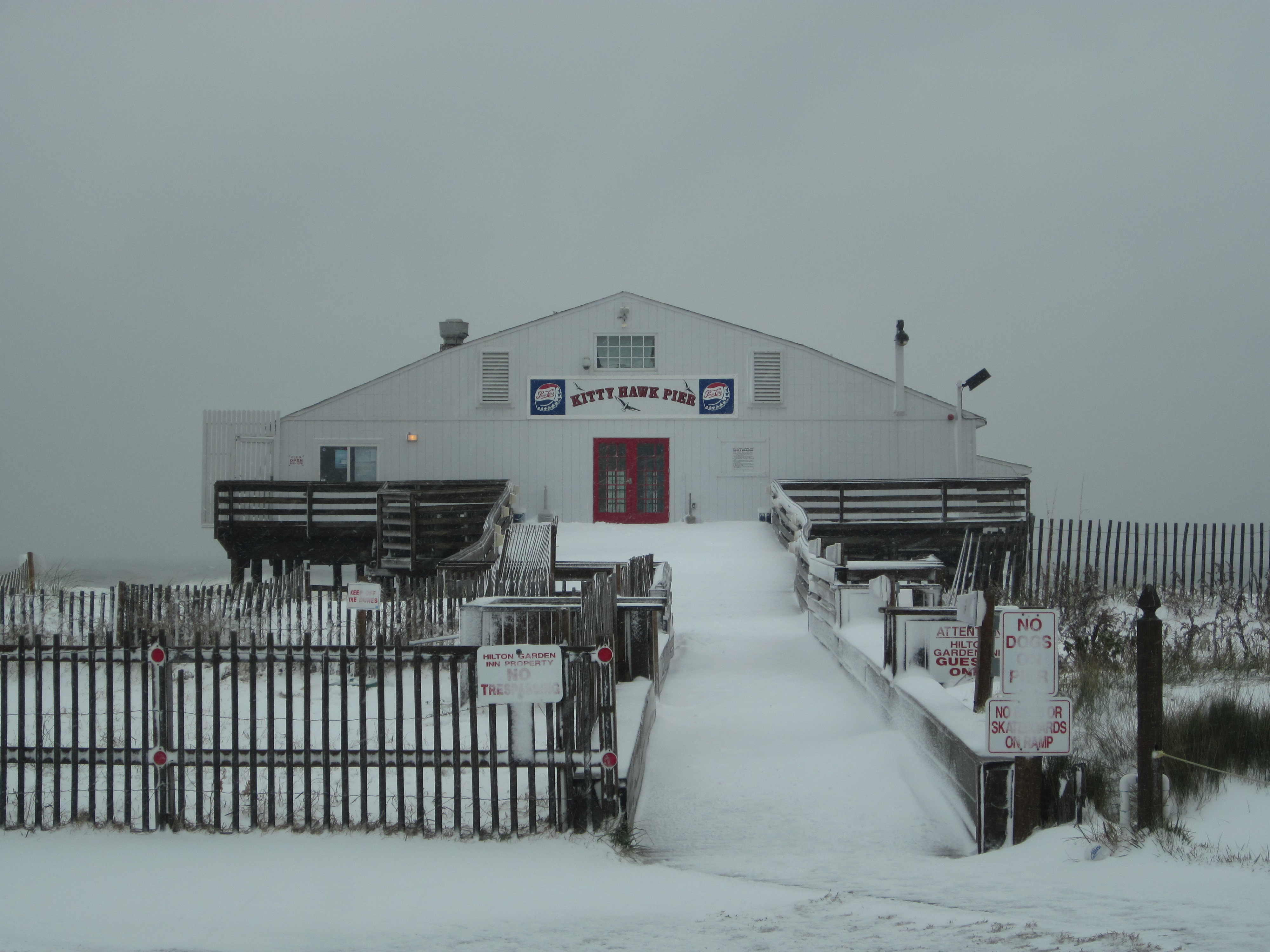 Most times, we can’t even get on the beach due the snow. I took this picture at the old Kitty Hawk Pier behind the Outer Banks Hilton garden.