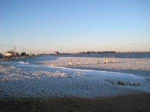 Yes, it does get cold and snowy in the Outer Banks. I took this picture at the east end of Whalebone Junction on the Albemarle Sound during our last cold snap.