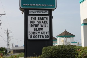 Weather is still beautiful here on the Outer Banks. Mid eighties down to mid 70’s. Slight breezes out of the southwest and one foot waves on the beach make the conditions seems like another typical end of summer. But as we all are aware Hurricane Irene is looming south in the Bahamas and traveling on a due north path right at Cape Hatteras. All reports put the storm directly over the thin stretch sand bar commonly know as the northern Outer Banks sometime this weekend.