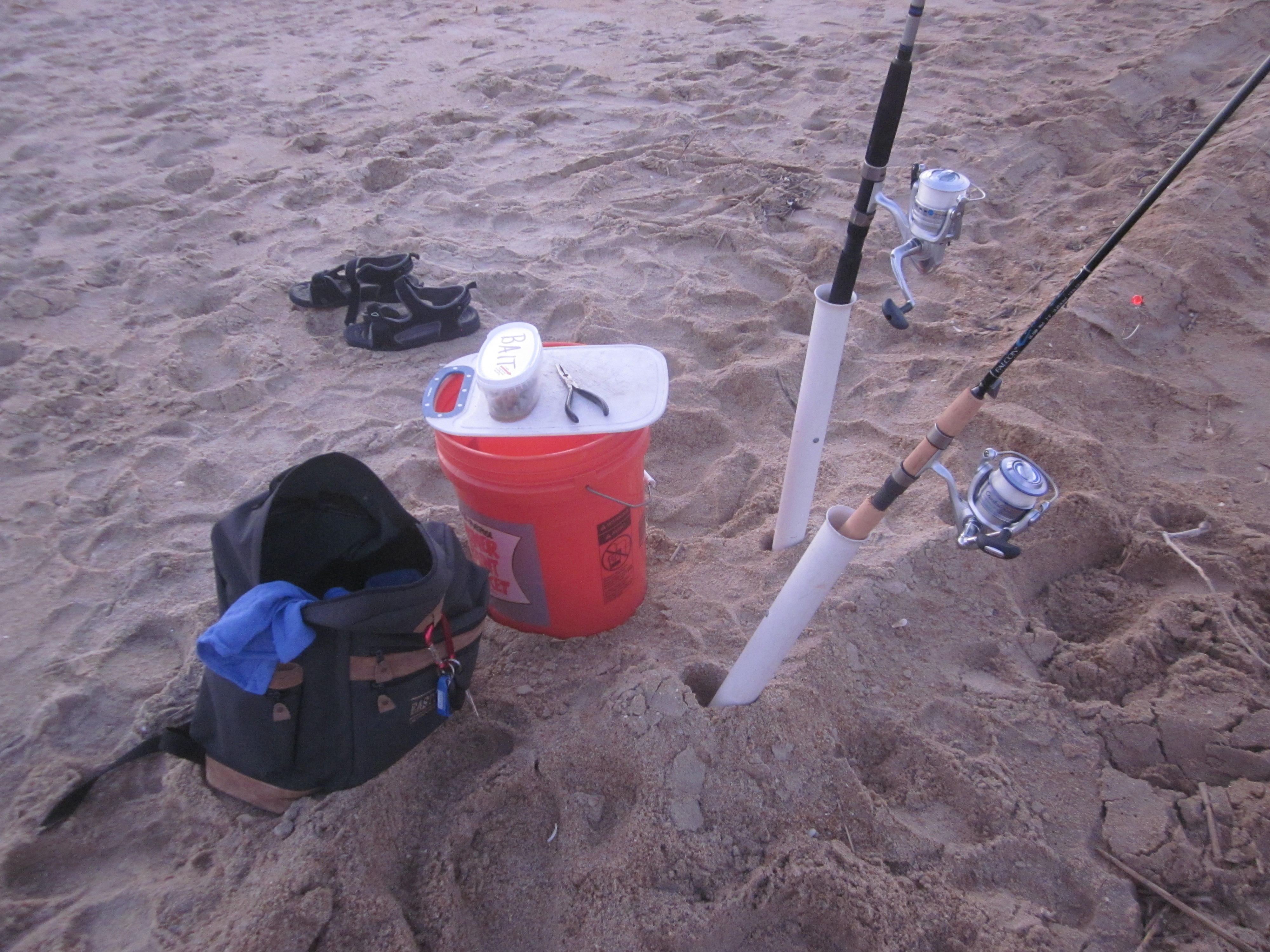 Most anglers will need a bucket, sand spikes, knife, cooler with ice, and a tool to remove hooks. I also bring sun screen, a hat, drinks and a snack. My list is a little longer but we are talking basics now.