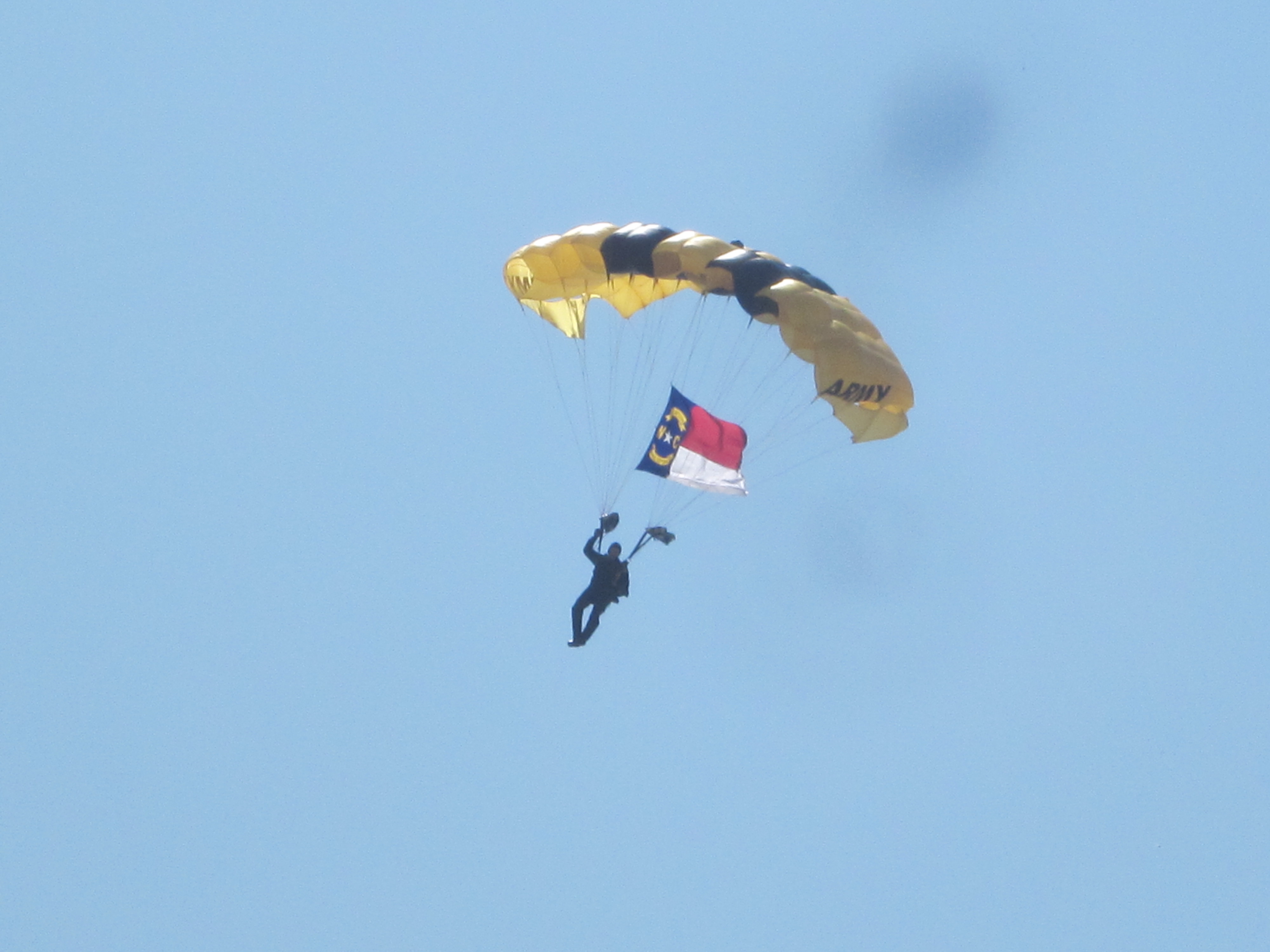 Four members of the Army’s Golden Knights parachute team made a grand entrance. Landing on the beach.
