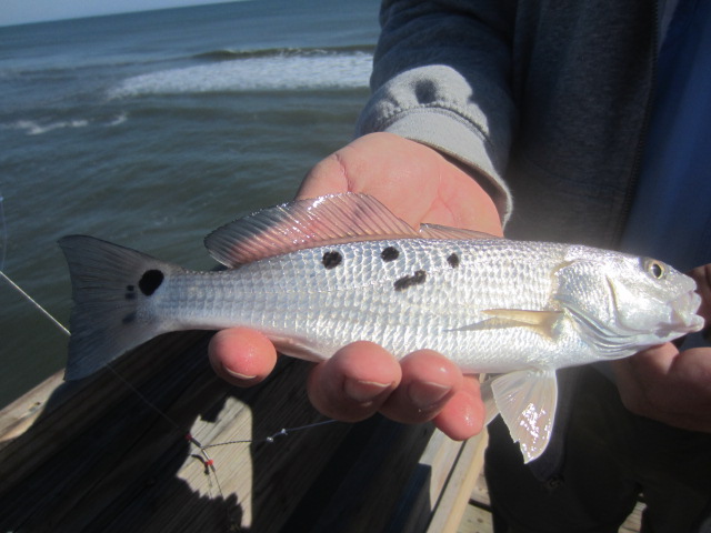 My last angling outing before the storm hit was on the Kitty Hawk fishing pier. Puppy drum, trout, spot and blues were in abundance. Bait choices were all over the board. Fish were hitting anything in the water.
